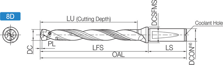 SF25DRA190M8, DRA Magic Drill 19.00-19.99mm Cutting Diameter, 8xD, Replaceable Tip Drill