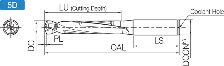 SS25DRA230M5, DRA Magic Drill 23.00-23.99mm Cutting Diameter, 5xD, Replaceable Tip Drill